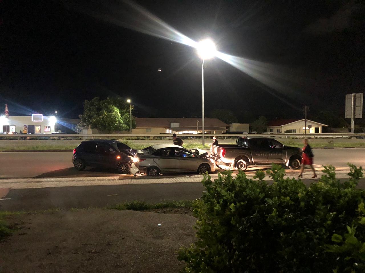 Den oranan di anochi a tuma luga un accidente riba e caminda pabao di Watty Vos Blvd unda cu pa un motibo of otro un hyundai a bay pega tras di e pick up di huur y despues un otro auto cu no a tuma nota loke a pasa su dilanti a bay pega tras di e hyundai. Tin basta daño material
